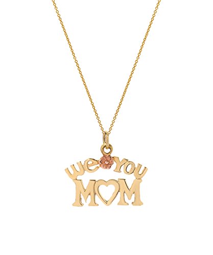 14 Karat Gold Two Tone We Love You Mom Pendant Necklace, 18"