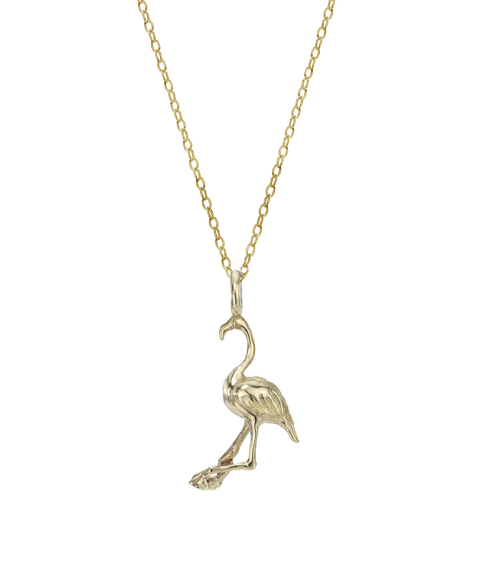 14 Karat Yellow Gold Flamingo Pendant Necklace, 18"