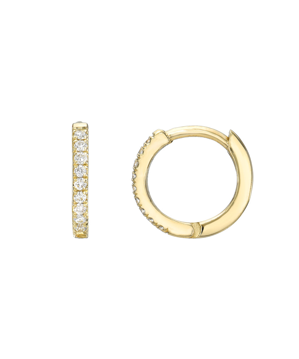 14 Karat Yellow Gold Diamond Pave Huggie Hoops