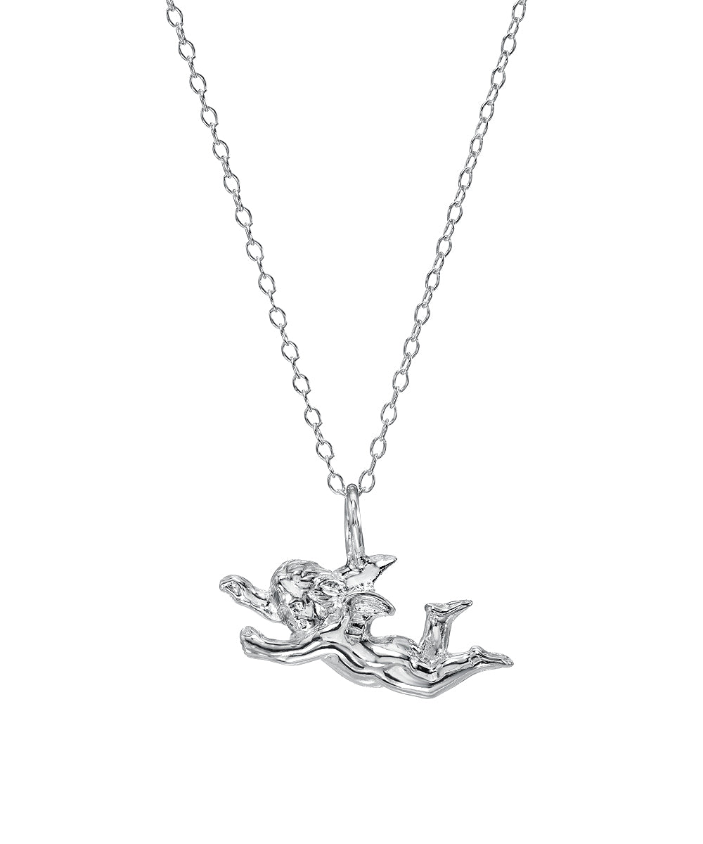 Celebrate timeless romance with this Sterling Silver Flying Cupid Cherub Pendant Necklace. Elegantly crafted in sterling silver, the pendant features a detailed cherub in flight. This classic design symbolizes love, affection, and playful charm. Finished with a polished shine and paired with a matching silver chain, it’s a meaningful piece perfect for everyday wear or as a heartfelt gift for someone special.