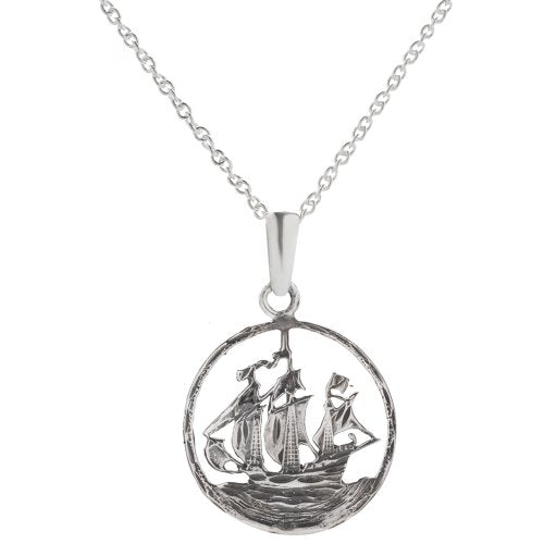 Sterling Silver Pirate Ship Pendant Necklace, 18"