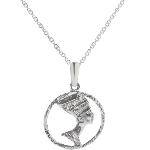 - Sterling silver queen Nefertiti pendant necklace. Purchase includes 18" Italian rolo chain necklace.