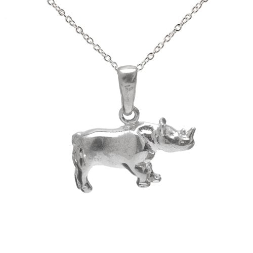 - Sterling silver rhinoceros pendant necklace. Purchase includes 18" Italian cable chain necklace.